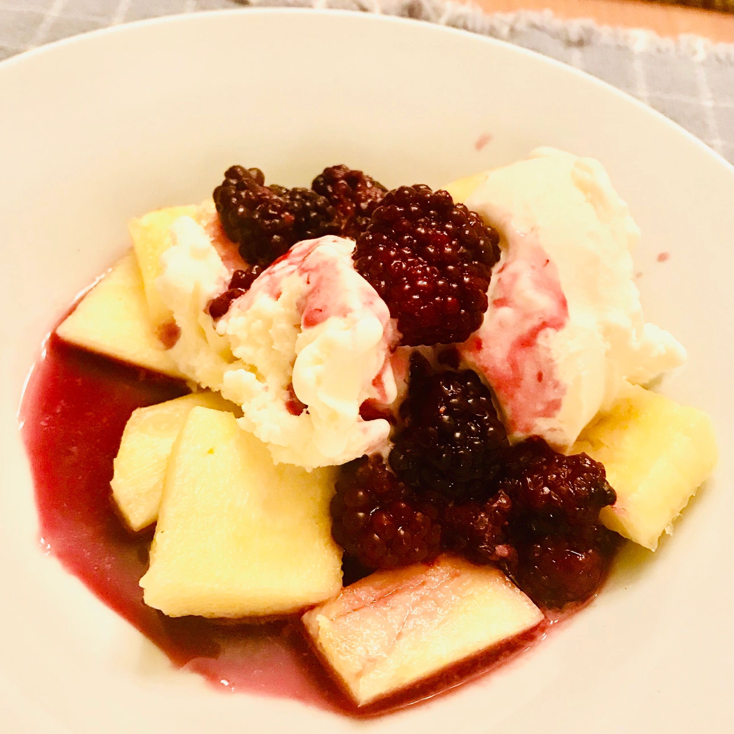 Fresh pineapple, blackberries, and vanilla ice cream were an excellent finish to the German dinner we recently prepared for guests. There were several requests for additional servings.